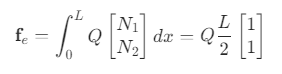 假设单元长度为 L ,线性形函数为 N_1, N_2 ,源项为常数 Q :