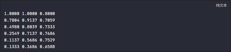 - 每行三个数字,分别代表 R、G、B