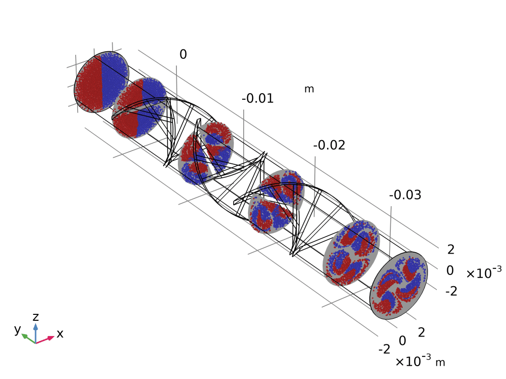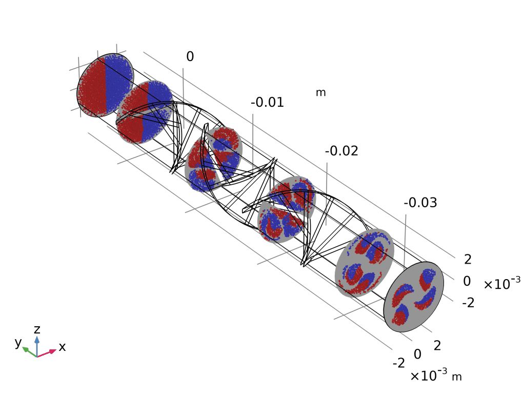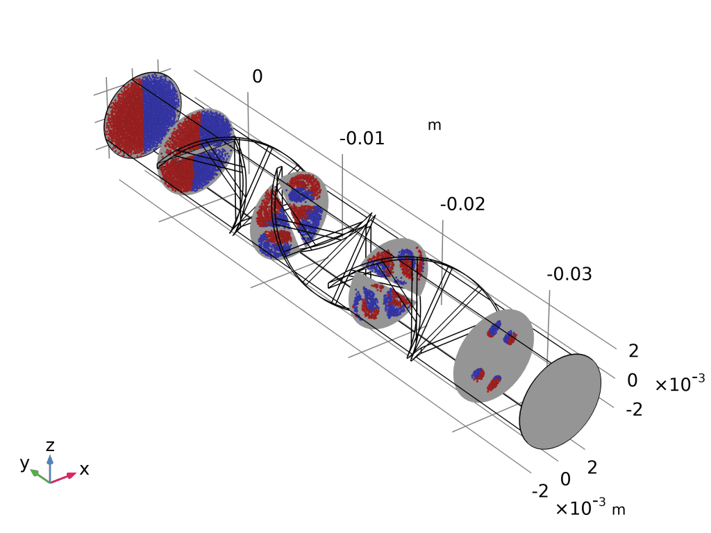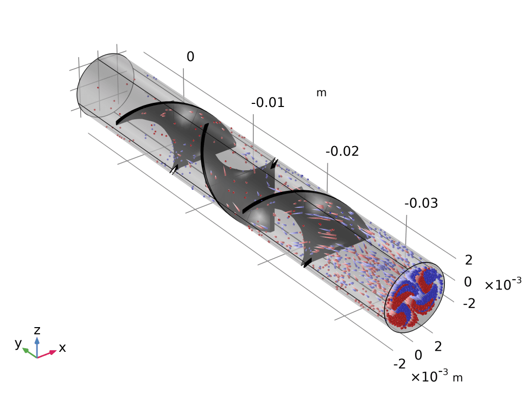 - 打开 “静态混合器粒子追踪”(粒子追踪模块 > Fluid Flow)。