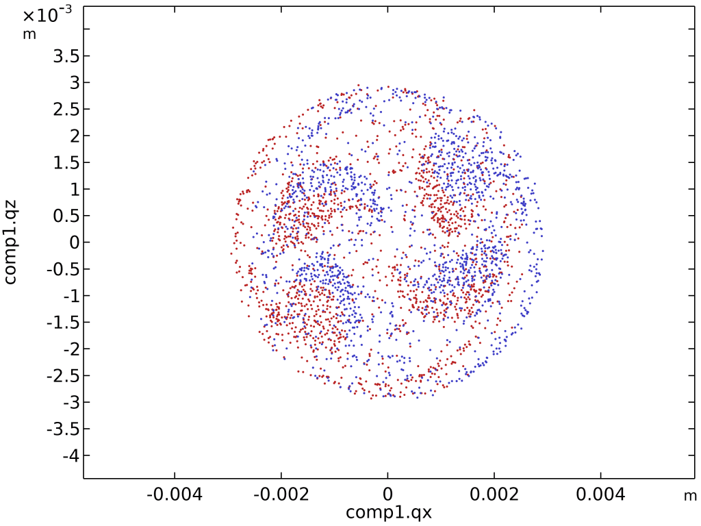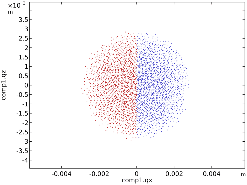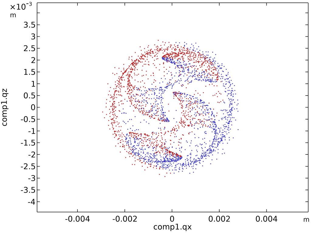 坐标着色。 - 结果:红蓝两团粒子依旧泾渭分明,混合效率一目了然。