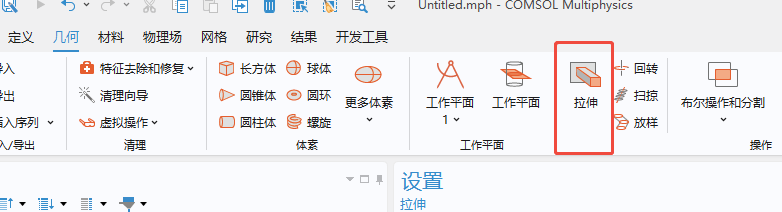 3. 选择物理场(可跳过,后续再添加),进入【几何】建模界面。